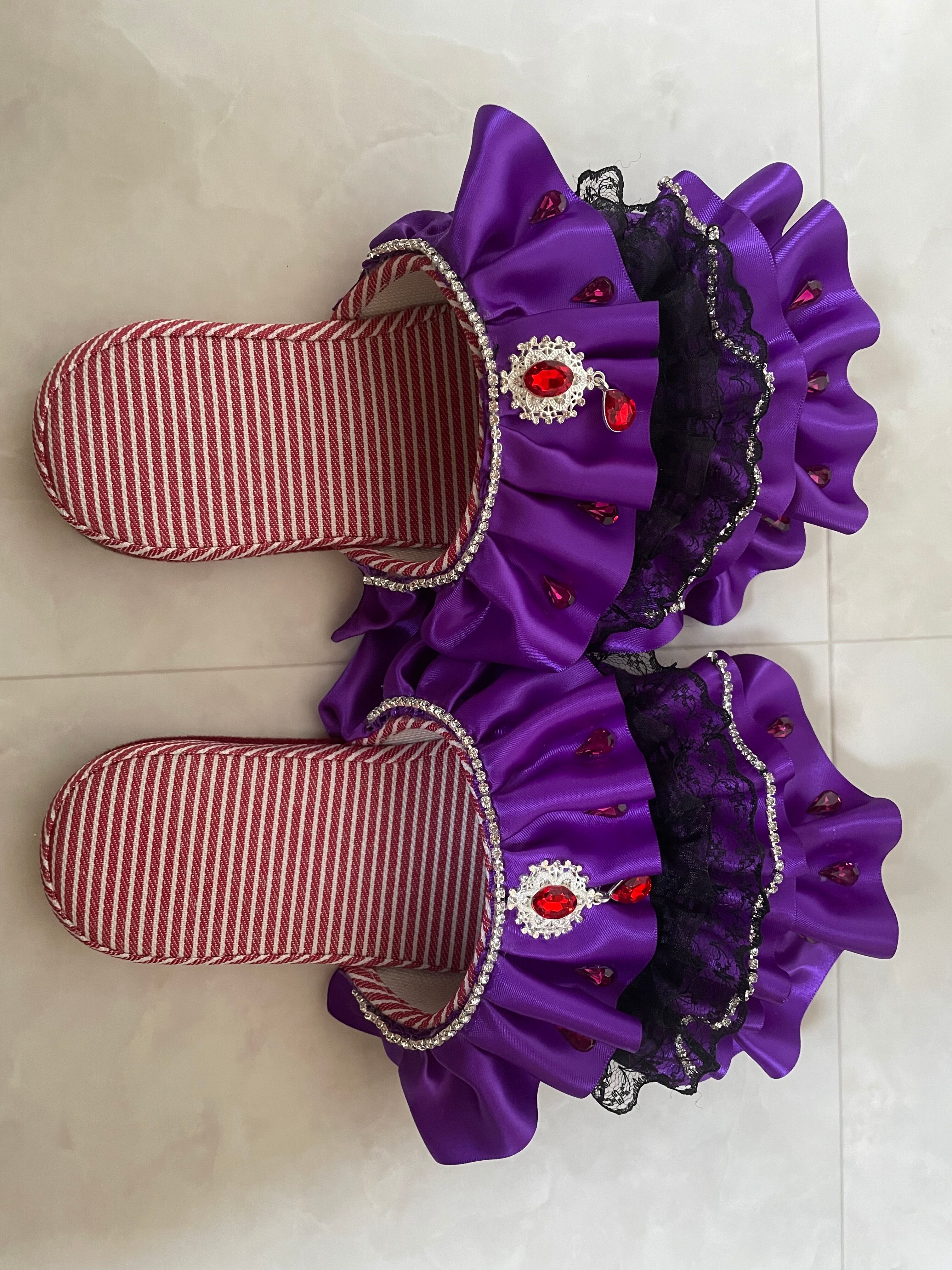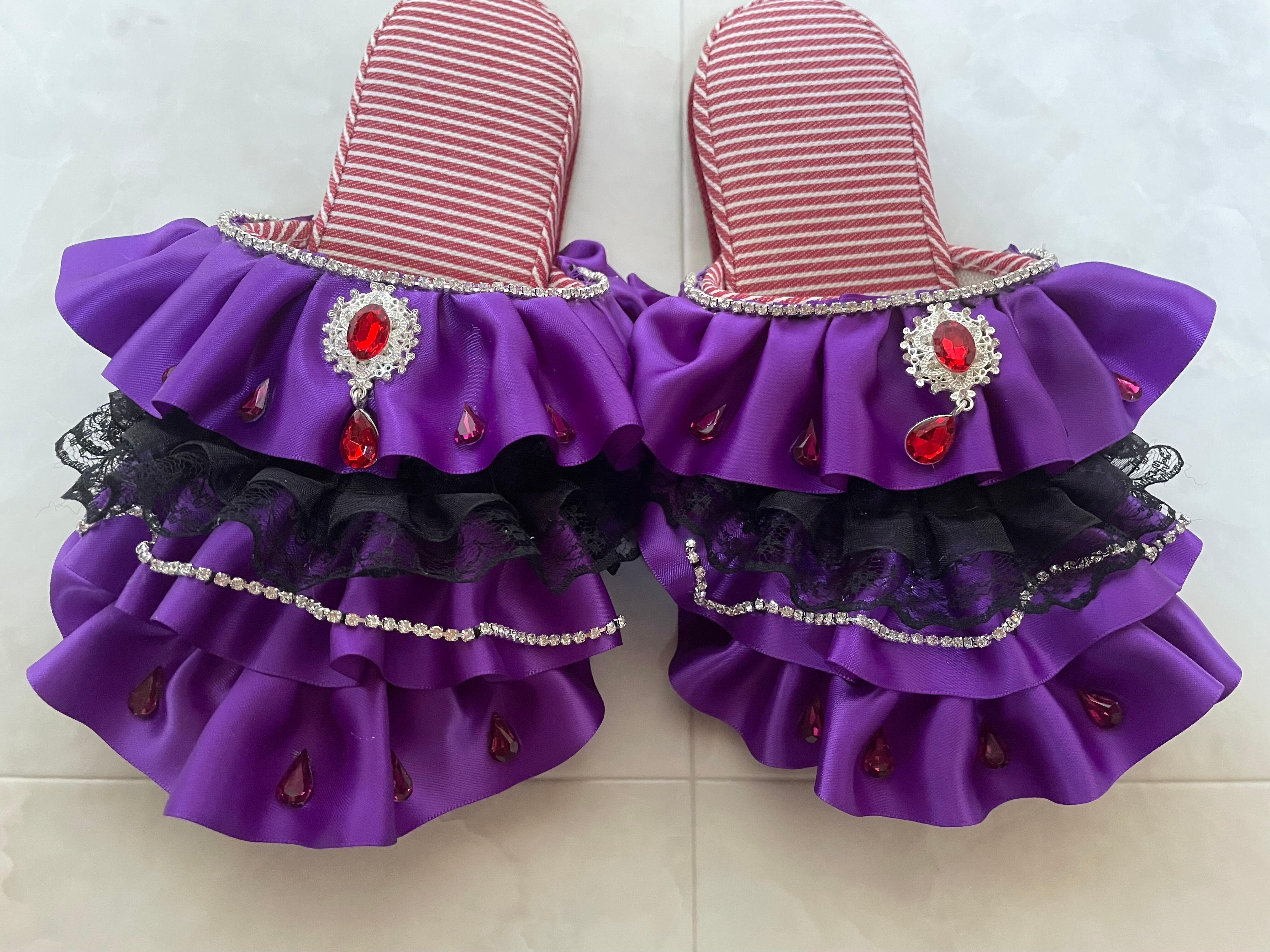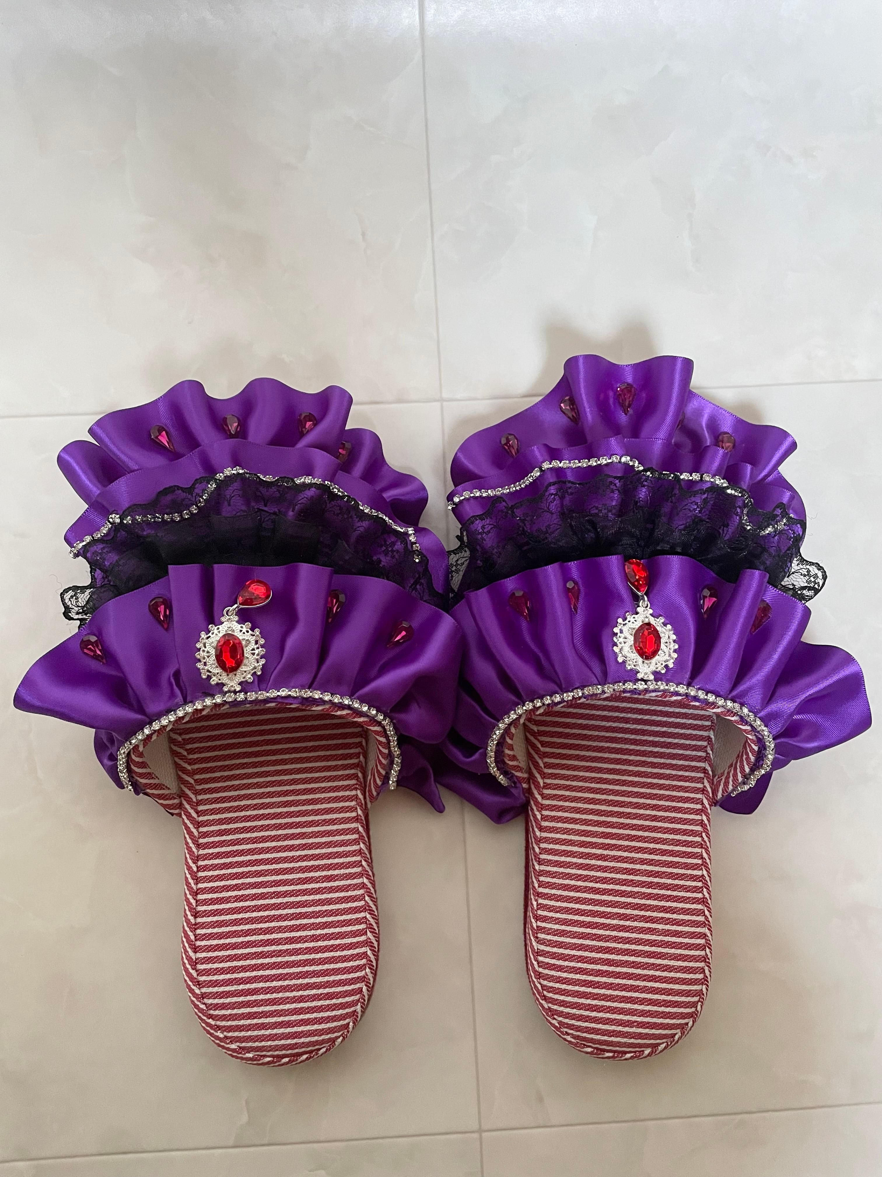 紫色をメインにキラキラとビジューが綺麗なスリッパです!